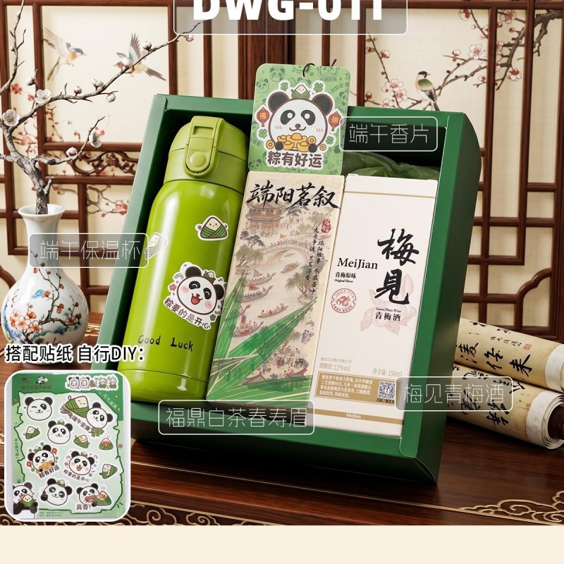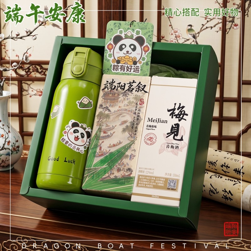 组合:保温杯300ML*1、端阳茗叙白茶8g*2袋、梅见青梅酒150ML*1、端午香片(白茶香)*1