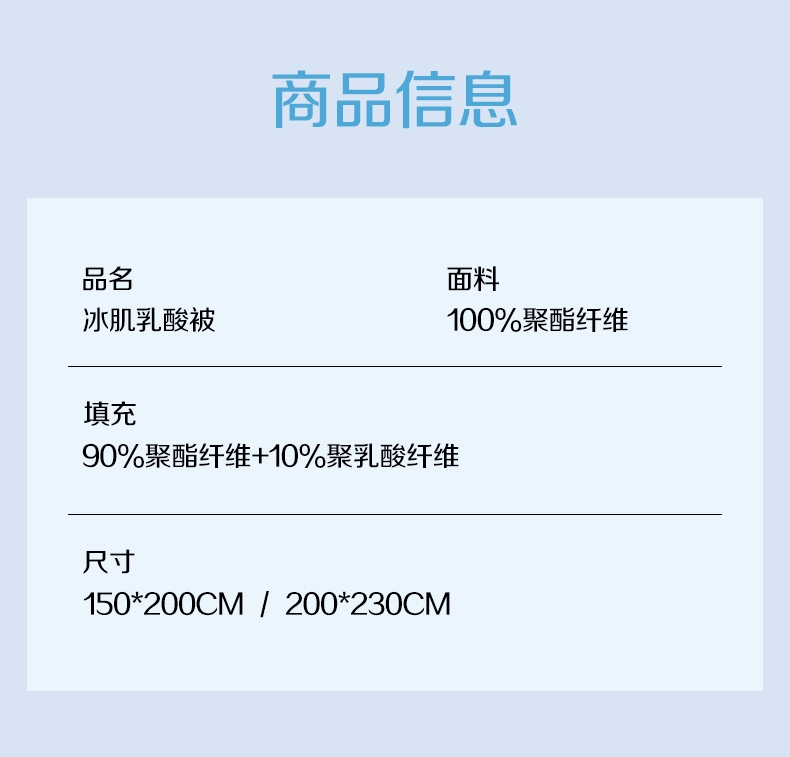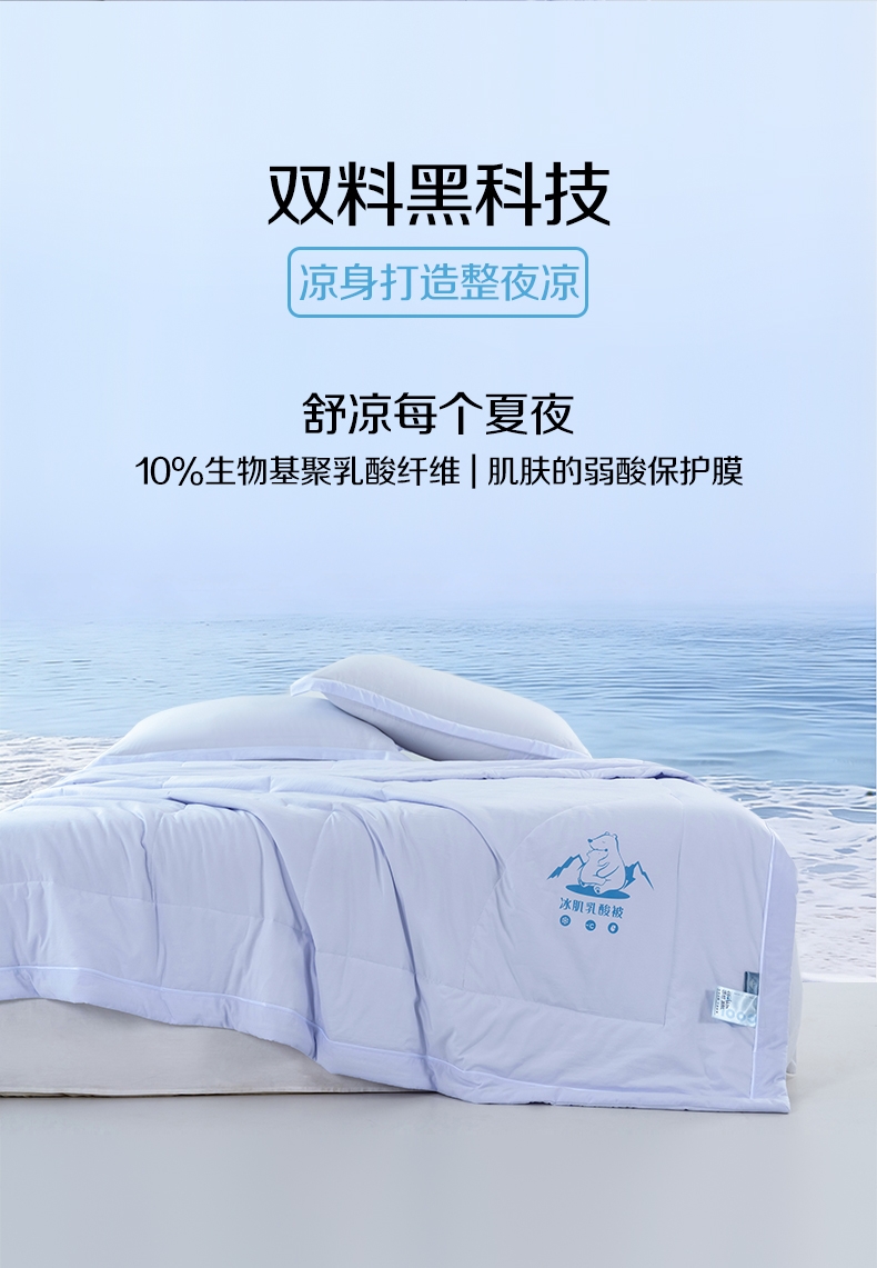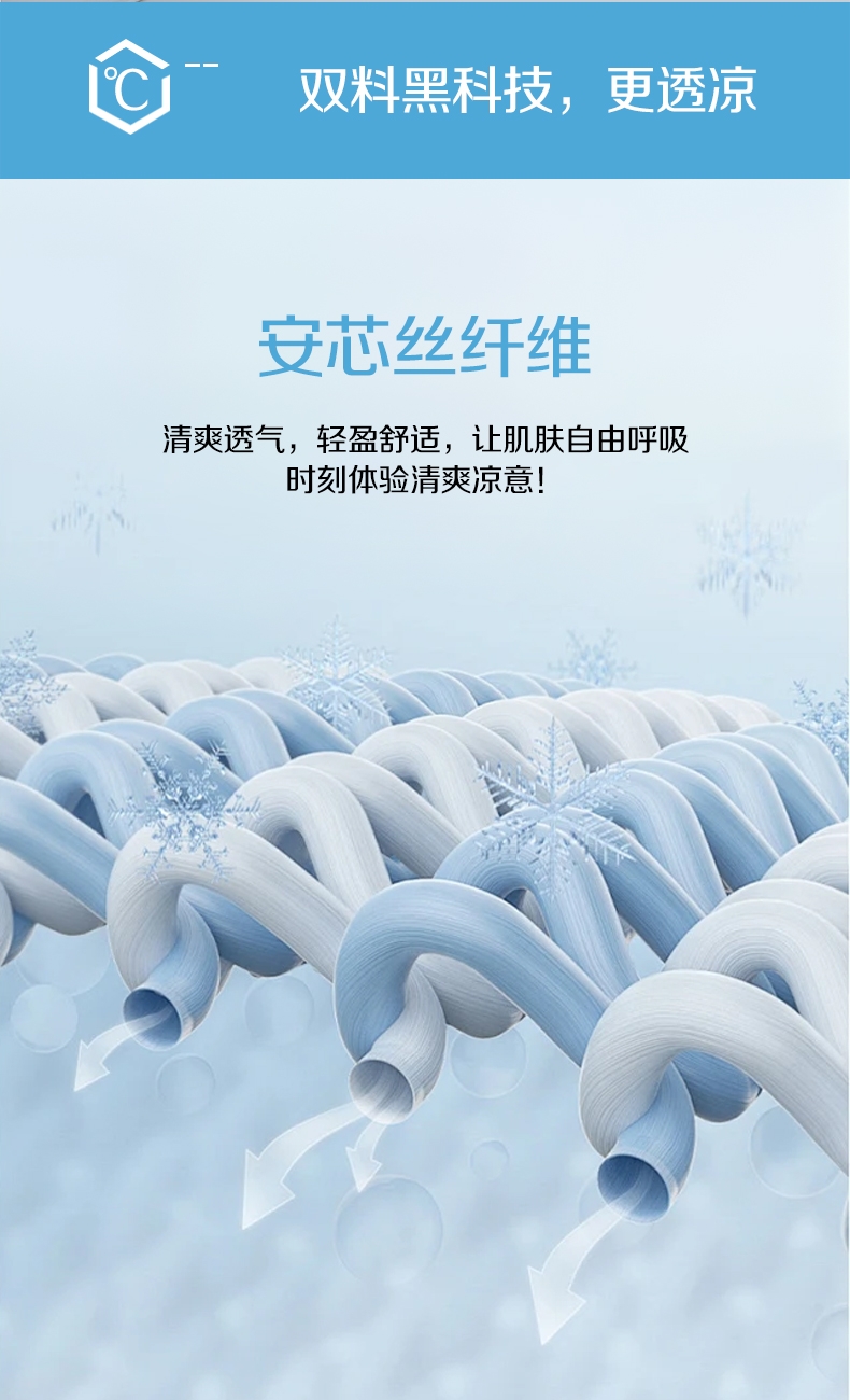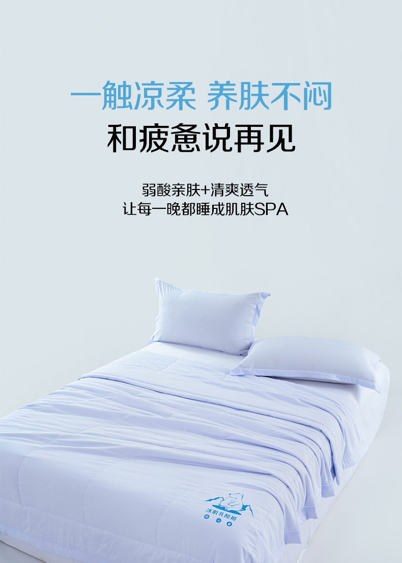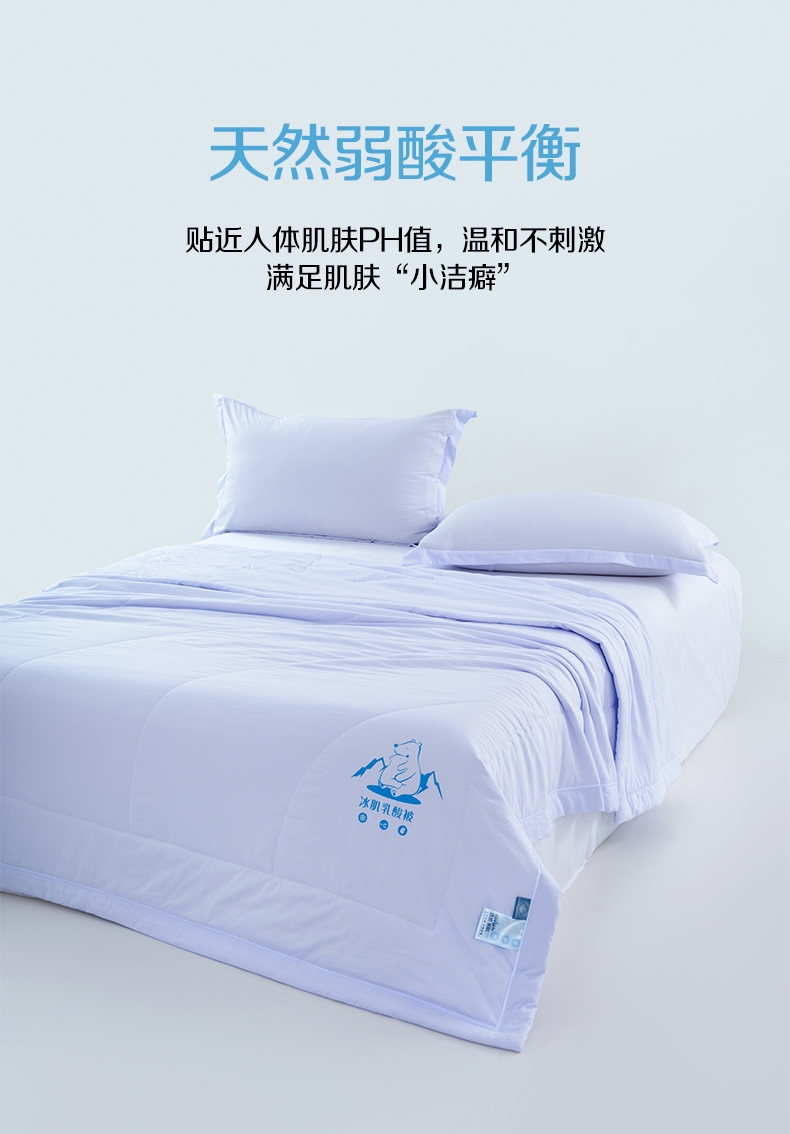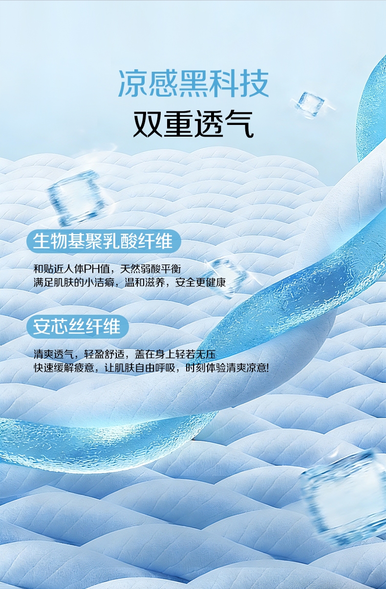 花花公子凉感双料黑科技 · 10%乳酸纤维填充;一触凉柔养肤不闷和疲惫说再见;贴近人体肌肤PH值,温和不刺激:满足肌肤“小洁癖”