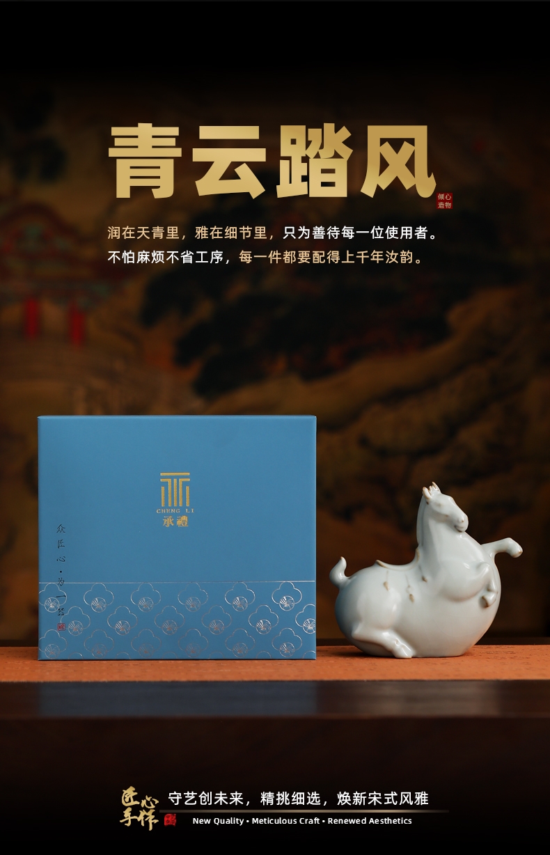 承礼 汝窑青云踏风陶瓷摆件
