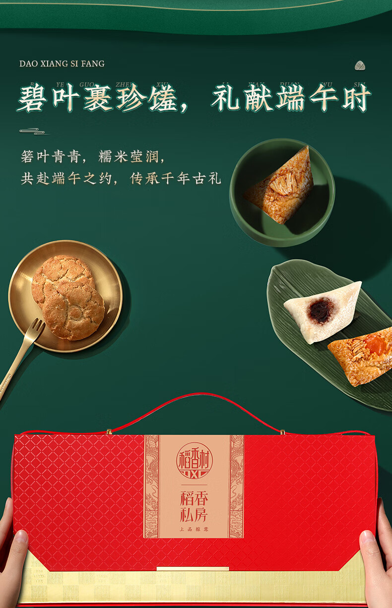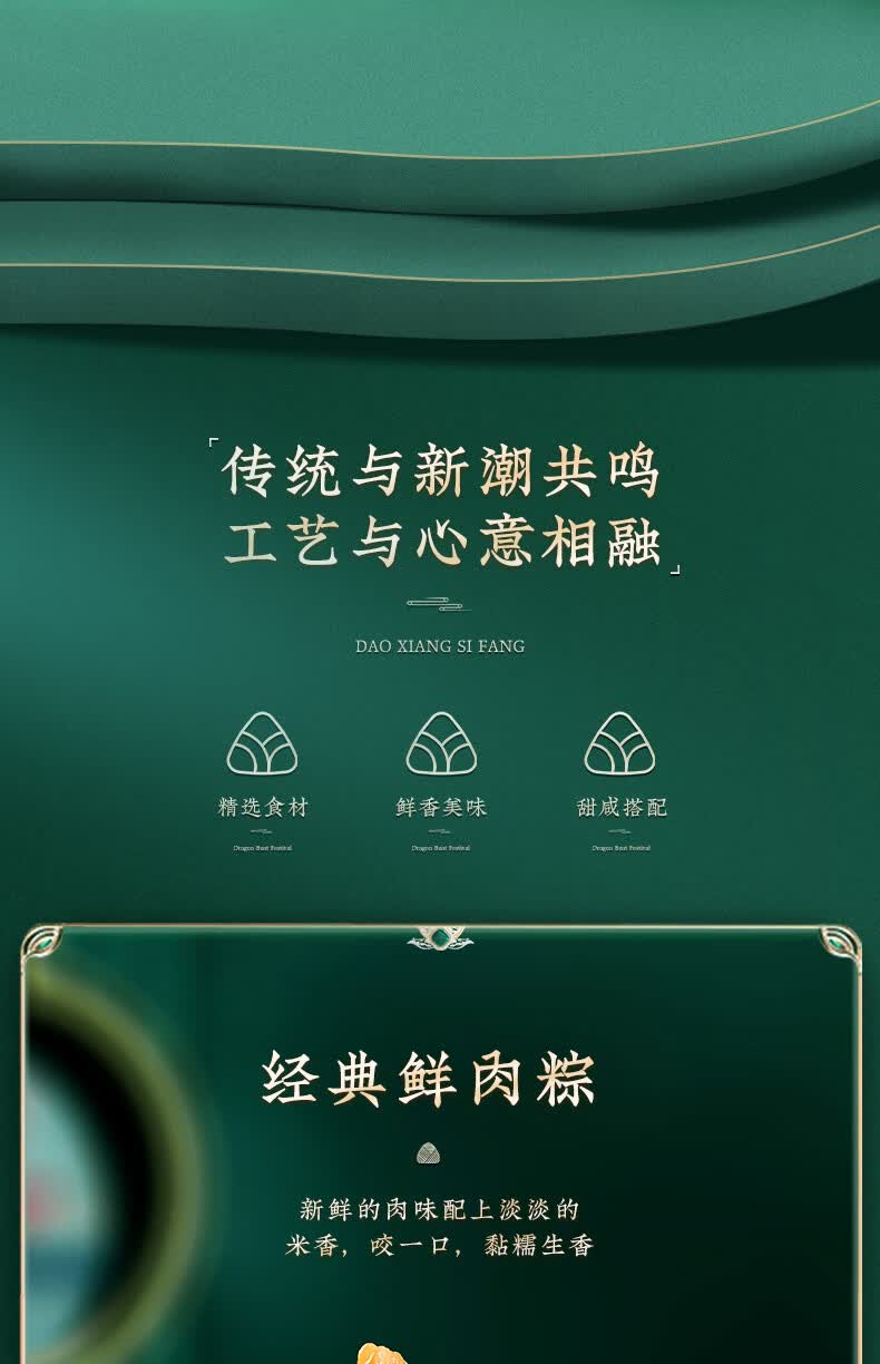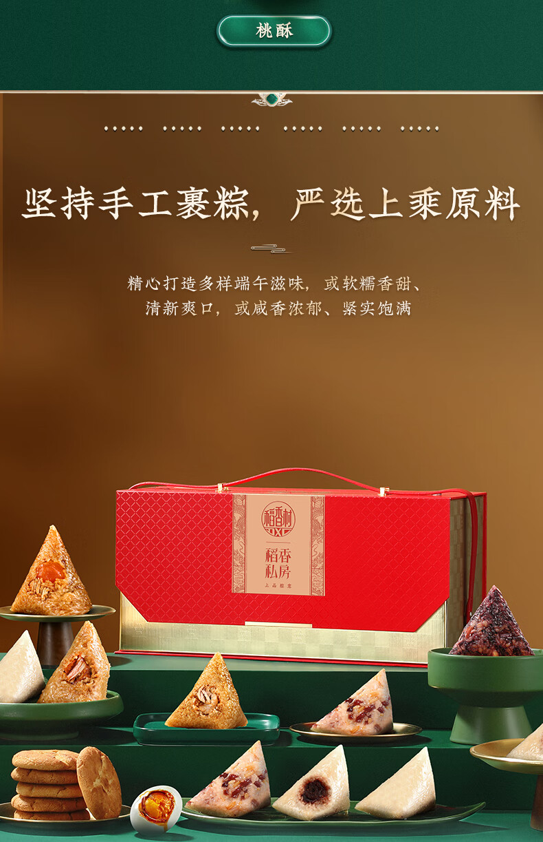严选上乘原料;精心打造多样端午滋味,软糯香甜、清新爽口,;或咸香浓郁、紧实饱满