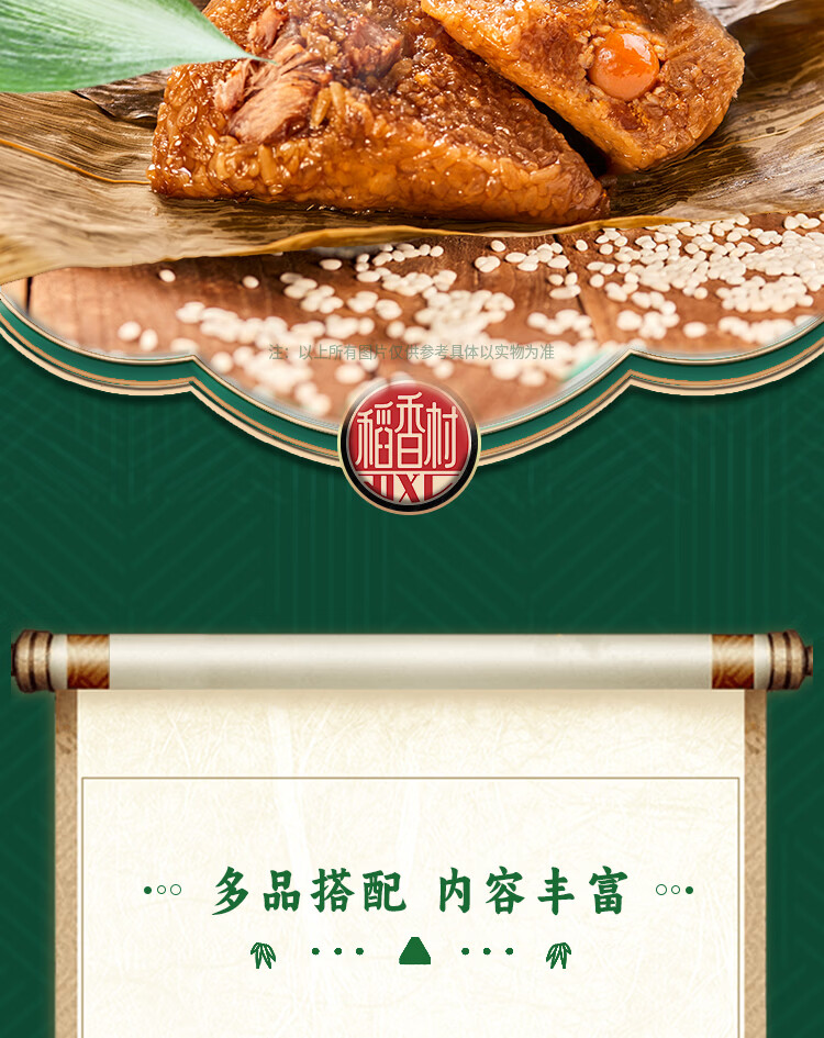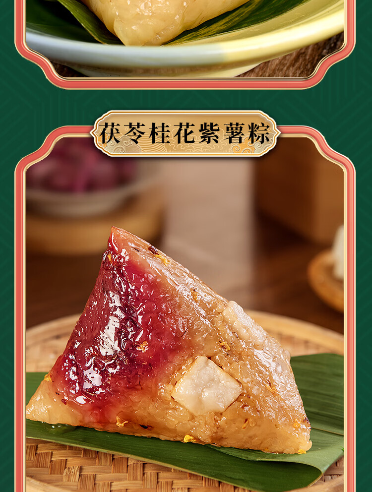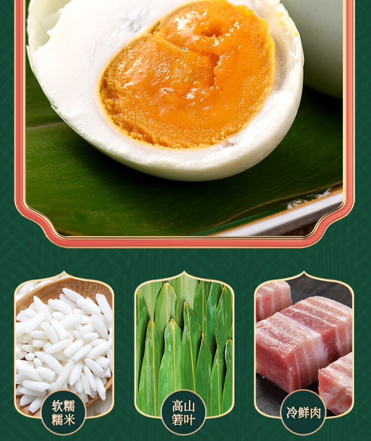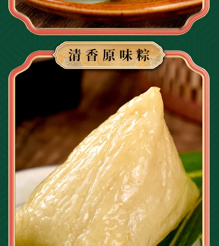 严选上乘原料;精心打造多样端午滋味,软糯香甜、清新爽口,;咸香浓郁、紧实饱满